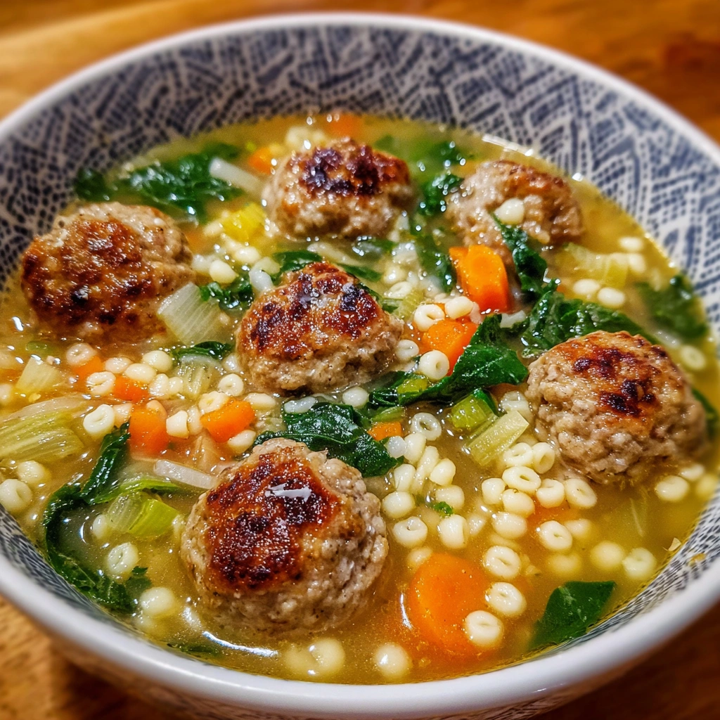 Italian Wedding Soup is a comforting classic featuring tender meatballs, small pasta, and leafy greens in a savory broth.